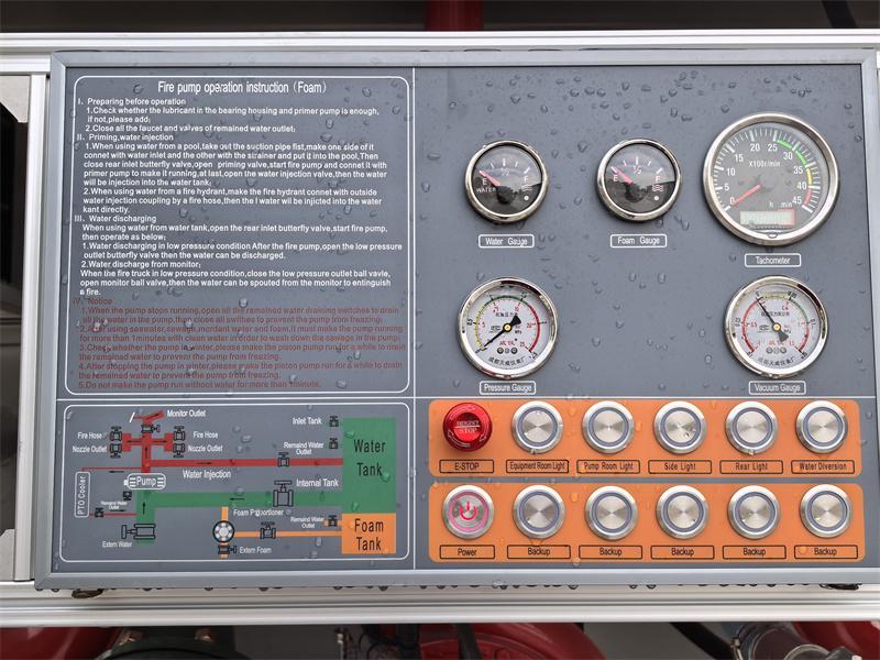 Контролна табла: Интегрише тахометар, вакуумметар, мерач притиска, мерач нивоа пене, мерач нивоа воде, упутство за употребу, дијаграм цевовода, индикаторску лампицу привода за избацивање горива, лампицу кутије за опрему, прекидач вакуум пумпе, спољни прекидач светла, главни прекидач за напајање, електронску контролу гаса, прекидач за хитно заустављање и друга дугмад.