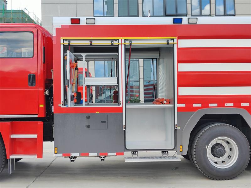 1. Предња просторија за опрему: Налази се иза возачке кабине, опремљен роло вратима од алуминијумске легуре, користи се за складиштење разне конвенционалне противпожарне опреме и личне заштитне опреме (као што су лопате за гашење пожара, пијуци, секире, кључеви и други алати за рушење, држачи црева итд.).